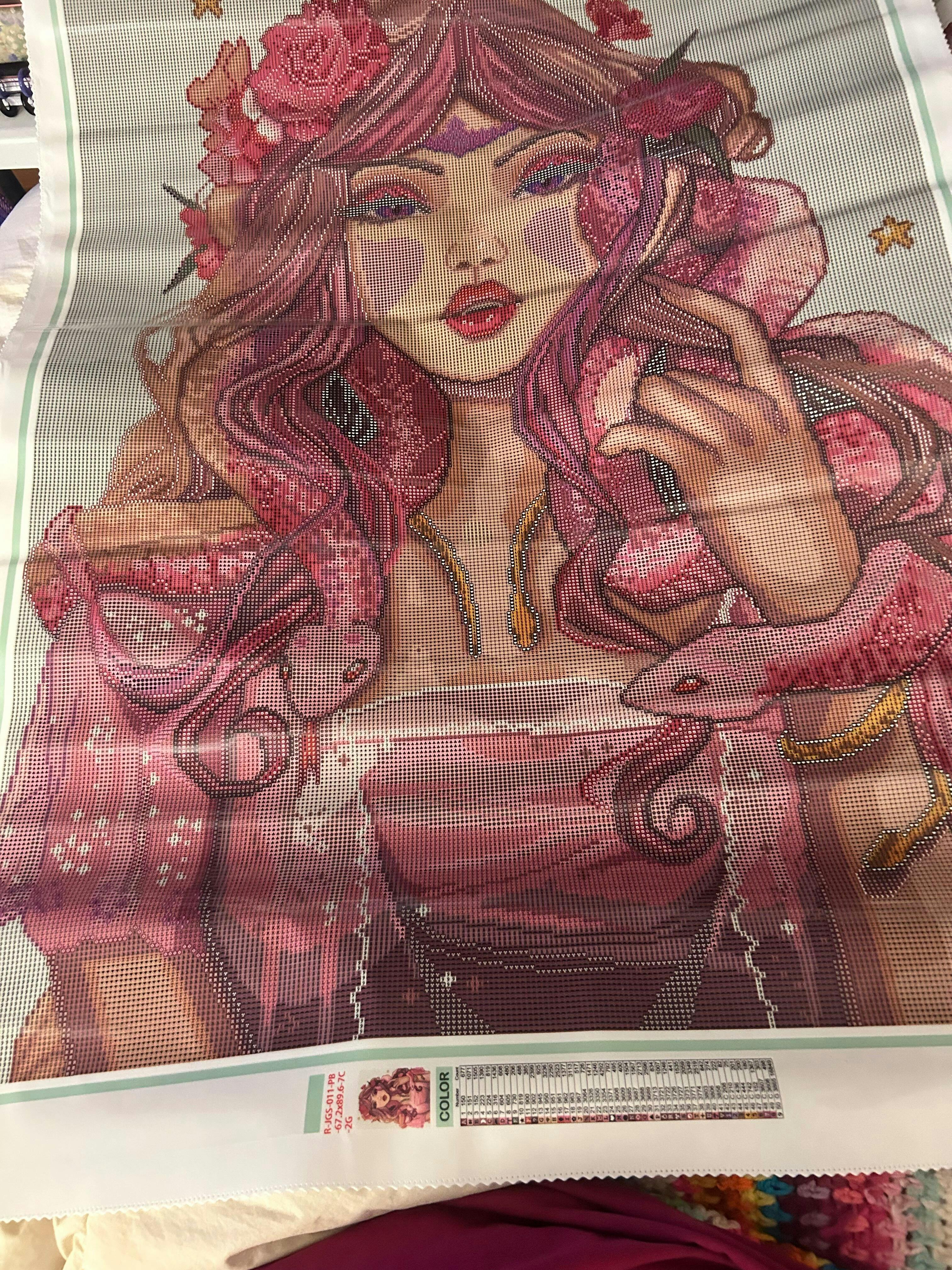 I received my kit in the mail and could be more excited when i opened it and saw how stunningly beautiful it is. The pinks and golds…, i just cannot wait to complete it! Annnnndddd, I was so surprised that my kit arrived about 4 weeks early?! Yay! It was in in perfect condition and the box was wrapped in a very thick plastic, sealed bag in case of transport through bad weather. I love JGS!🫶🏼