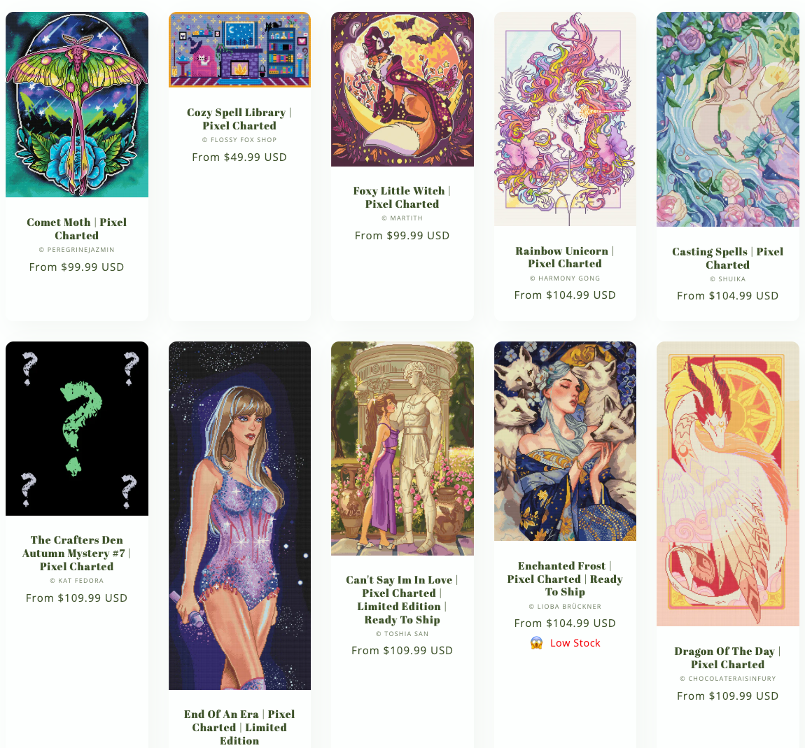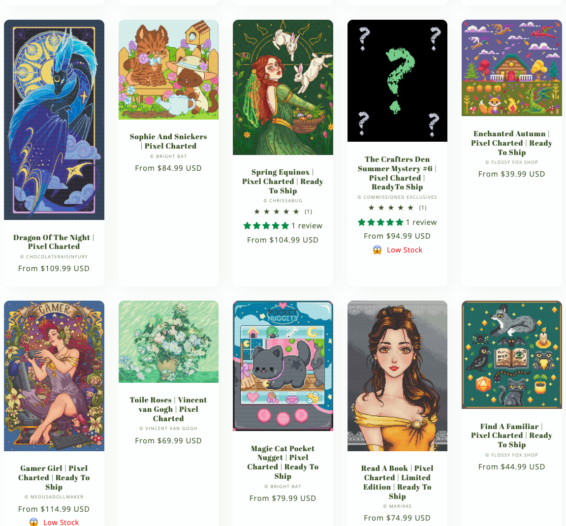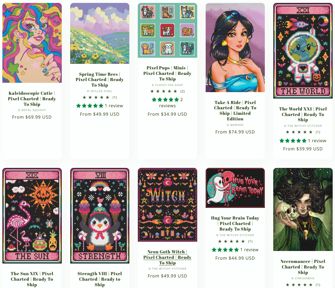 • the team looks through your past orders to make sure we dont send you a duplicate of a pixel-charted kit you already ordered and send you a new image from one of out 150 + hand rendered kits